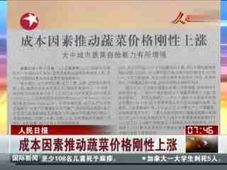 近日,國(guó)家發(fā)改委發(fā)布一項(xiàng)調(diào)研報(bào)告表明:成本因素推動(dòng)蔬菜價(jià)格剛性上漲,天氣和周期性因素易造成蔬菜價(jià)格短期波動(dòng)。